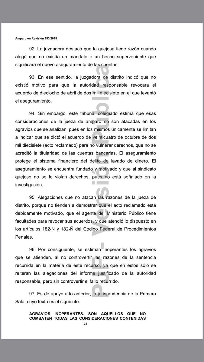Según el fallo del amparo, la PGR se excedió al asegurar las cuentas bancarias, pues estas estaban congeladas por una indagatoria en donde se negó la aprehensión de Gómez Urrutia.