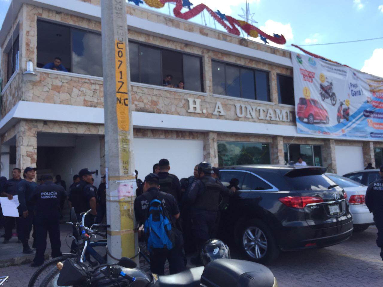 TULUM, Quintana Roo.- Alegando condiciones infrahumanas para llevar a cabo su labor, por lo menos 70 agentes de la Policía Municipal de Tulum se manifestaron en los bajos del Palacio Municipal durante 10 horas.
