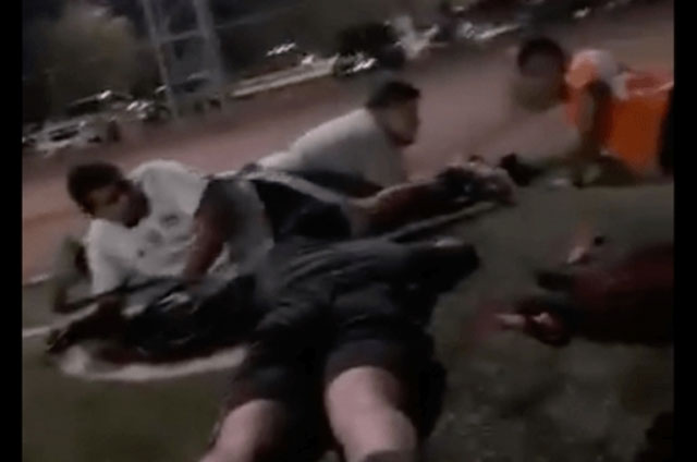 Un video que circula en redes sociales, muestra a un grupo de jóvenes tirarse al piso para resguardarse de las posibles balas perdidas producto de la abrupta balacera.
