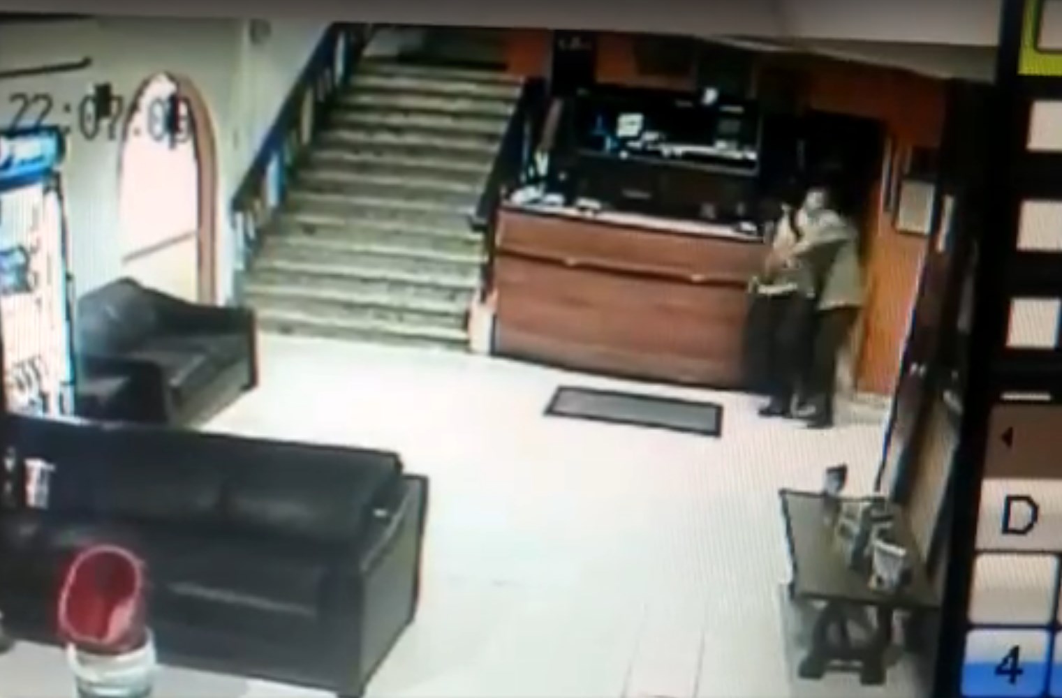 Centro, Tabasco.- De acuerdo a un video que circula en redes sociales, cámaras de seguridad captaron el momento en el que un presunto delincuente habría intentado asaltar la recepción del Hotel Ritz ubicado en la Avenida Francisco I. Madero de Villahermosa, Tabasco.