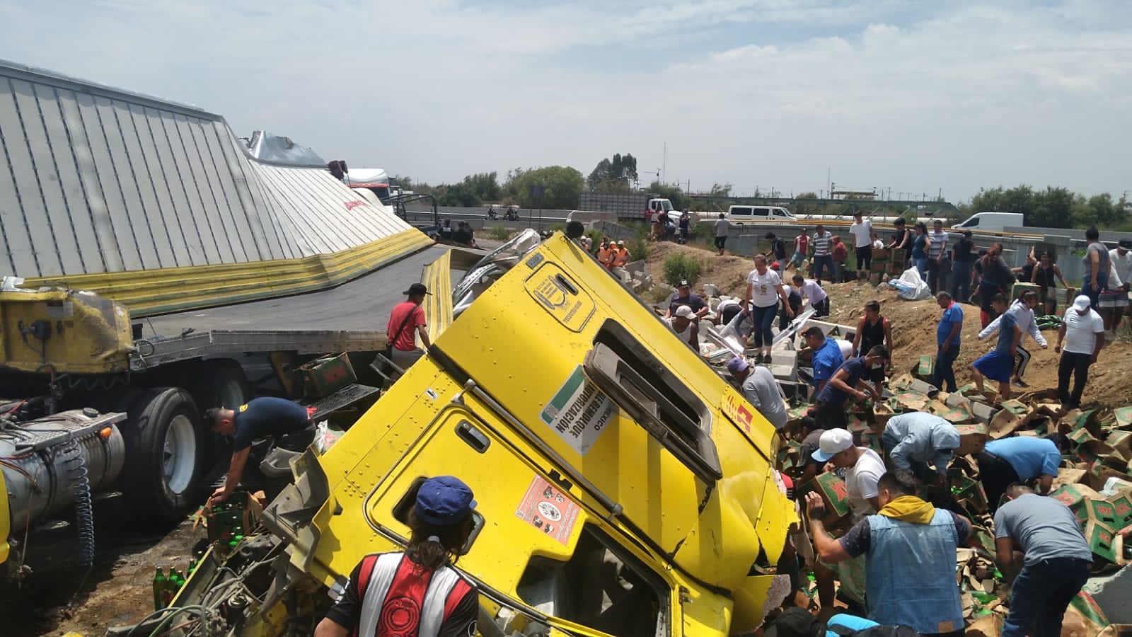 MÉXICO.-Un tráiler que transportaba cervezas se volcó el pasado lunes, a la altura de Ecatepec en el Estado de México, a la altura del kilómetro 48 hacia Río de los Remedios.