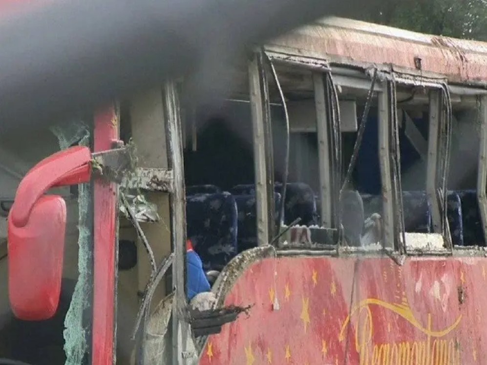 Según imágenes en los medios, el autobús quedó volcado en una cuneta y aparentemente tenía una llanta rota.