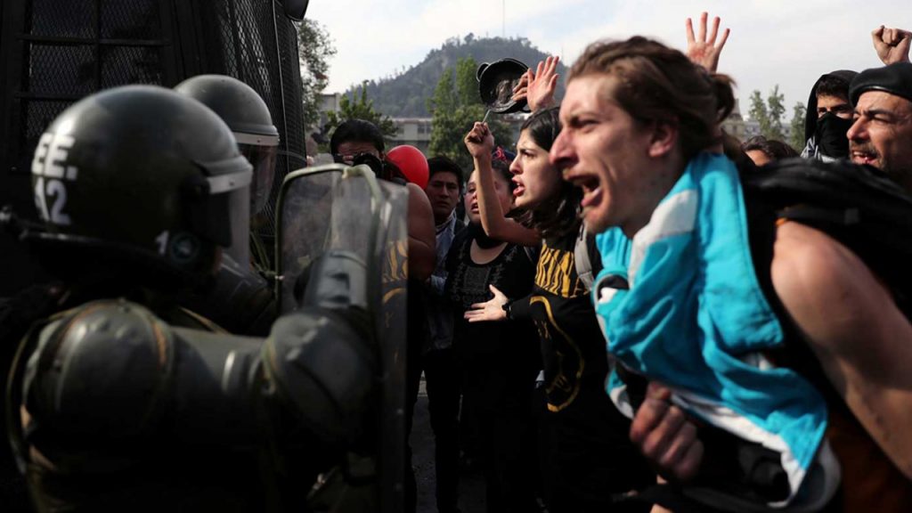Bajo gritos de “basta de abusos” y con la consigna en redes sociales “#ChileDespertó”, el país enfrenta extendidos reclamos contra un modelo económico en el que el acceso a la salud y a la educación es prácticamente privado, con una alta desigualdad social, bajas pensiones y el alza de los servicios básicos.