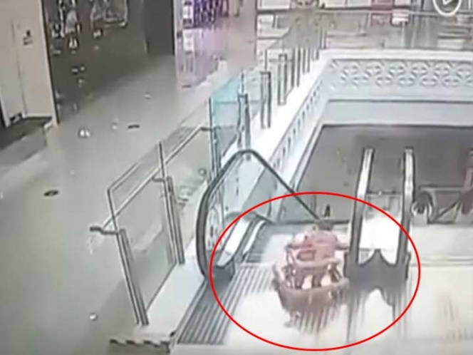 En la grabación, realizada por las cámaras de vigilancia, se puede observar cómo el pequeño sale del restaurante en el que se encontraba con su progenitora y se acerca con la ayuda de su andadera a una escalera eléctrica, por la que desafortunadamente se acaba precipitando.
