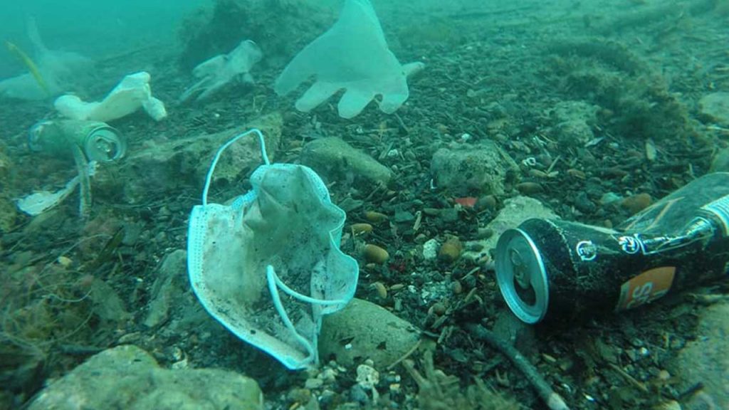 Un video grabado la semana pasada por el grupo Operation Mer Propre (Operación mar limpio) muestra cubrebocas y guantes dispersos en el lecho del mar, entre latas de cerveza, colillas de cigarrillos y más basura.