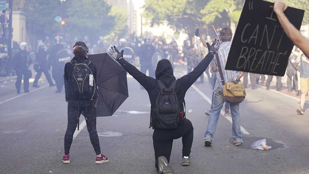 Las protestas pacíficas por la muerte, hace más de una semana, de George Floyd en la ciudad de Minneapolis cuando era inmovilizado por un policía blanco derivaron en incidentes violentos en muchas ciudades, incluida la capital, Washington.