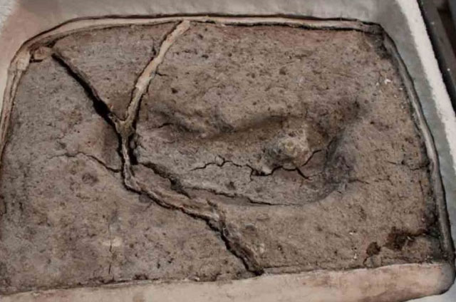 La huella de un pie fue excavada en un sitio que estaba destinado a viviendas, en la ciudad de Osorno, en el sur del país.