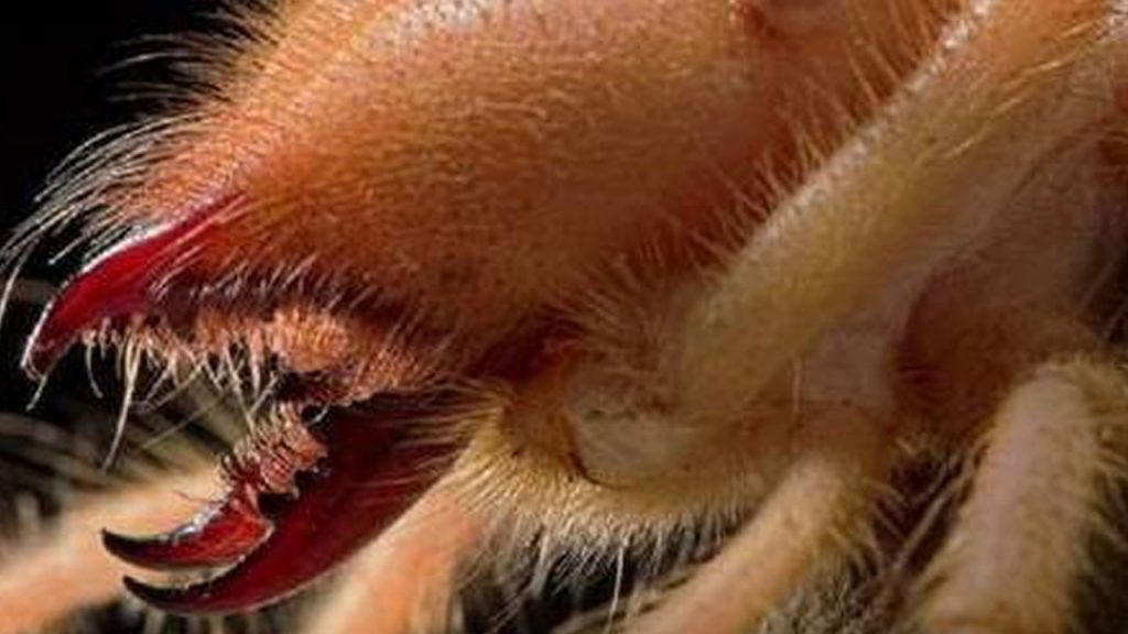 Tiene piezas bucales en forma de pinzas, las cuales se denominan quelíceros, lo que permite que estos animales consuman carne humana sin ningún problema. Además puede medir entre dos a cuatro centímetros.