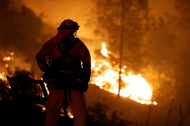 El Departamento Forestal y Protección contra Incendios dijo que 500 inmuebles están amenazados por el siniestro, que les ha costado la vida a dos bomberos.