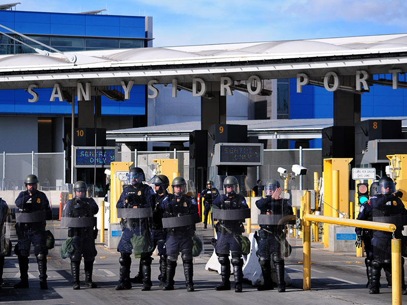 Estados Unidos.- Elementos del Ejército de Estados Unidos apoyados por personal Aduanas y Protección Fronteriza (CBP) realizaron una demostración de contención en caso que algún grupo de la Caravana Migrante intente entrar al país norteamericano por la garita de San Ysidro.