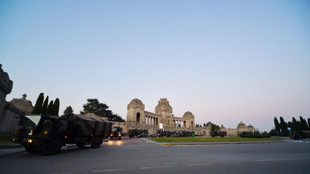Según el diario local L’Eco di Bergamo, los vehículos militares sacaron cerca de 60 féretros para incinerar los restos en instalaciones de varios municipios que se han ofrecido a ello.
