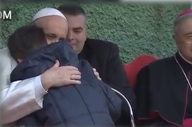 Ante esta situación, el papa Francisco le animó a que le dijera su pregunta al oído, le abrazó y ambos conversaron durante algunos minutos. Posteriormente, el pontífice pidió permiso al niño para revelar su inquietud.