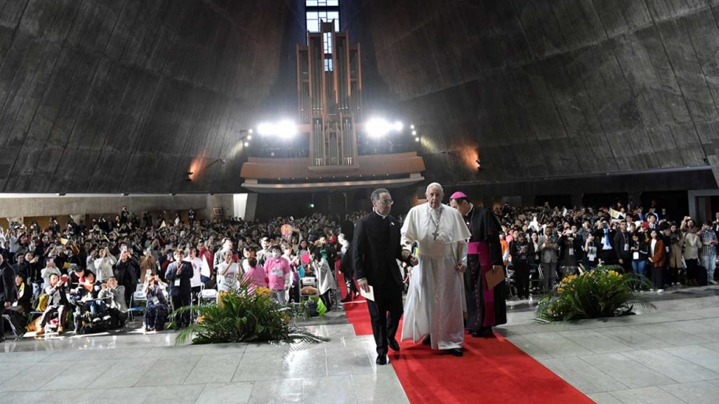 Tras reunirse con el emperador, el Papa conversó y bromeó con los jóvenes en la Catedral de Santa María de Tokio, en un ambiente distendido, entre risas y aplausos.