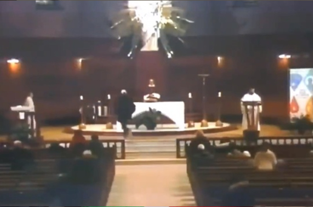 La misa de 8:30, durante la cual el sacerdote fue atacado, era transmitida en vivo a través de Internet. Por ello, el momento quedó grabado.