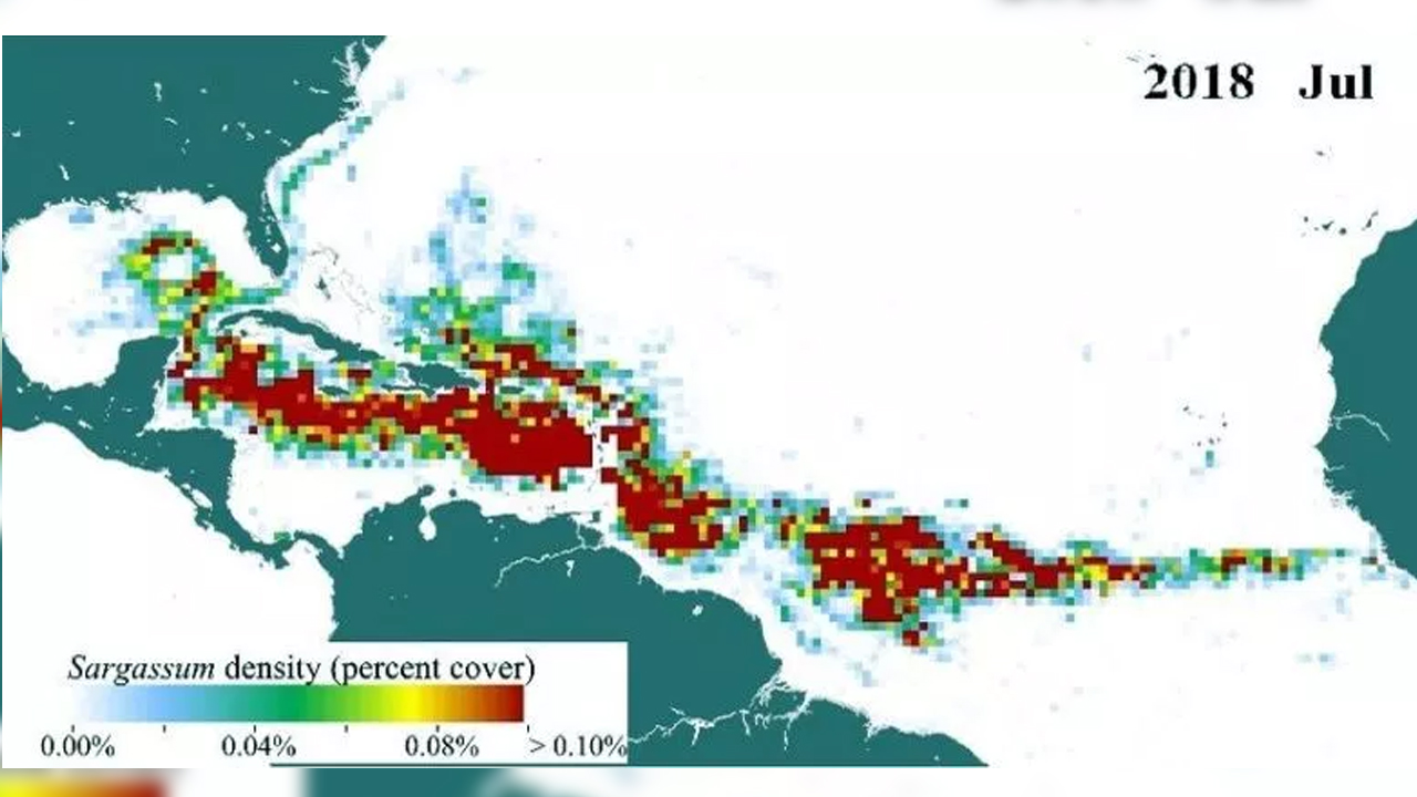 El llamado “Gran Cinturón de Sargassum del Atlántico” se registró el año pasado mediante observaciones satelitales de la Administración Nacional de la Aeronáutica y del Espacio (NASA, por sus siglas en inglés).