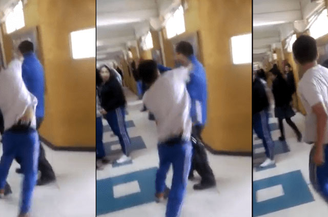 De acuerdo con la información, sucedió en la ciudad chilena de Chillán cuando un profesor sale de un salón y es recibido por un puñetazo de parte de un estudiante.