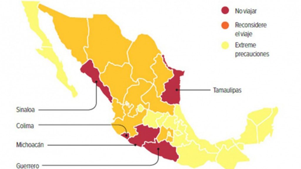 Esta alerta se suma a la que tienen Sinaloa, Colima, Michoacán y Guerrero, debido a que hay gran cantidad de actividad criminal, así como a Tamaulipas, ya que la alta criminalidad incluye secuestros.