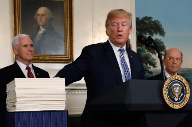 Acompañado por los secretarios de Defensa, Comercio y Seguridad Interna, además del vicepresidente Mike Pence, Trump añadió que su decisión obedeció a razones de seguridad, pero dejó en claro su malestar con parte del contenido y el proceso.