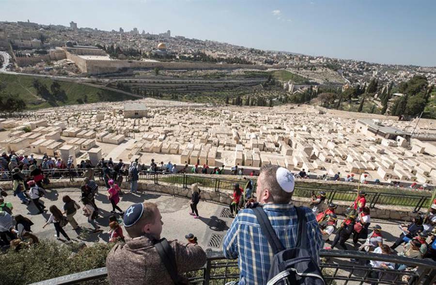 La procesión, llevada a cabo bajo estrictas medidas de seguridad de las fuerzas israelíes, bajó por el Monte de los Olivos, en Jerusalén Este, la parte de la ciudad ocupada por Israel en la Guerra de los Seis Días, de 1967.