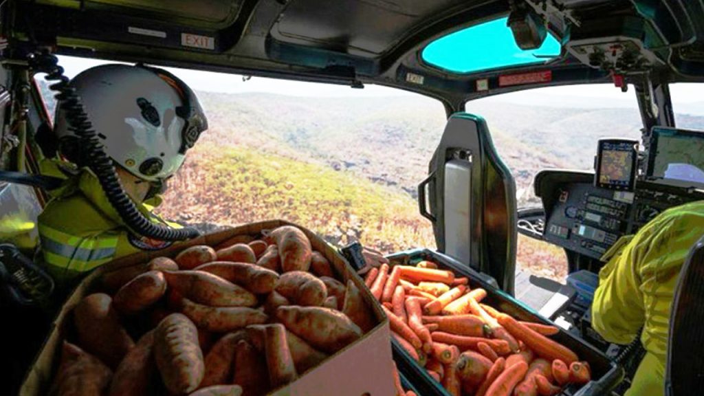 Las autoridades australianas han arrojado desde helicópteros miles de kilos de zanahorias y de boniatos para los animales que se encuentran en zonas afectadas por la ola de incendios que afecta al país, según lo informó este sábado en Twitter el Ministro de Medioambiente de Nueva Gales del Sur, Matt Kean.
