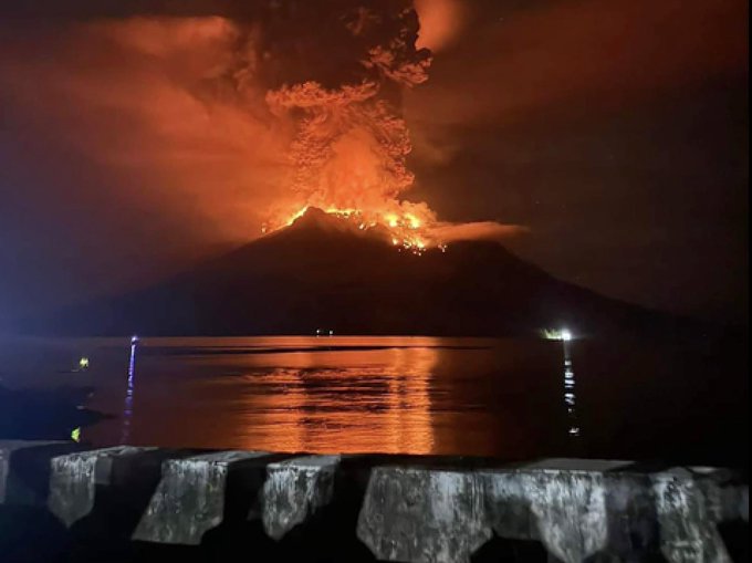 El cráter del monte Ruang, en el norte de Indonesia, comenzó a expulsar lava y ceniza en la noche del martes y la actividad volcánica registrada el miércoles obligó a las autoridades a elevar el nivel de alerta al máximo.