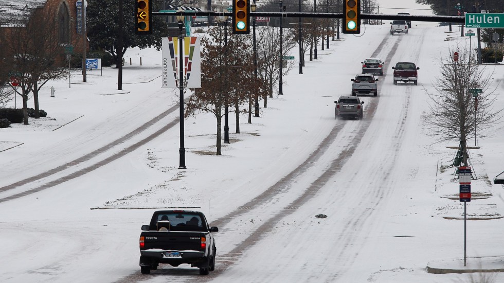 Fort Worth (United States), 17/02/2021.- Drivers are still dealing with treacherous conditions on streets for the fourth day after unusual weather hit the area, in Fort Worth, Texas, USA on 17 February 2021. Snow and cold weather have blanketed North Texas for the fourth day in unseasonably cold weather with overnight temperatures at -10 degrees celsius. (Estados Unidos) EFE/EPA/Ralph Lauer