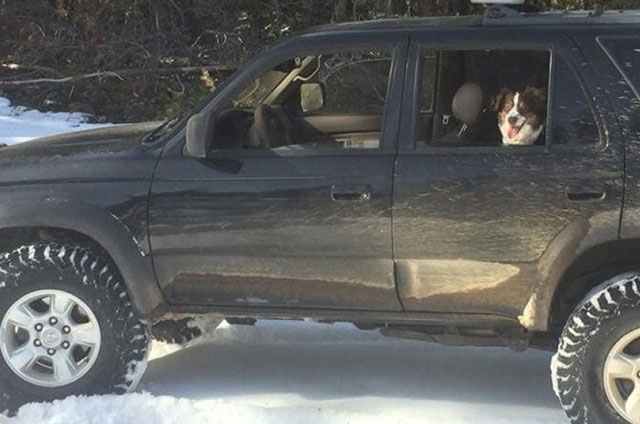 El sujeto y su perro Ally se quedaron varados en la zona profunda de nieve de un camino del Servicio Forestal.