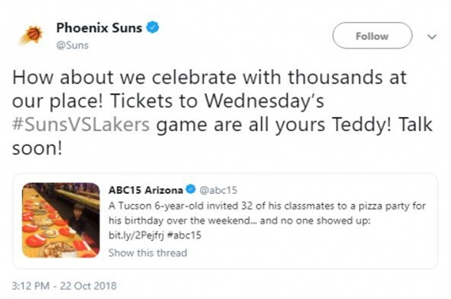 De igual manera, los Phoenix Suns le ofrecieron a Teddy y a su familia boletospara su juego contra los Lakers de Los Ángeles.