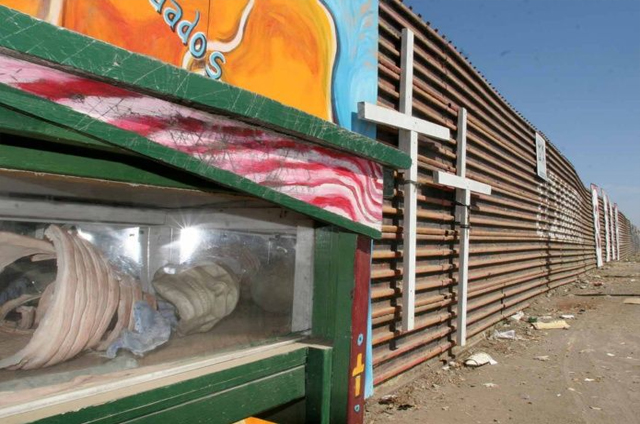 Los agentes rastrearon las huellas dejadas atrás al sur hacia el muro fronterizo. Cerca de la pared, los agentes se encontraron con una mujer joven boca abajo en la tierra con una fractura en la parte inferior de la pierna