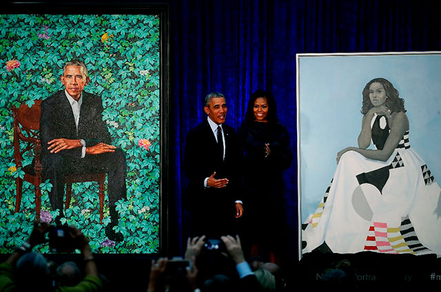 Y lo hicieron junto a sus autores, Kehinde Wiley y Amy Sherald. Es la primera vez que dos artistas negros son elegidos para pintar los retratos oficiales de una pareja presidencial estadunidense.