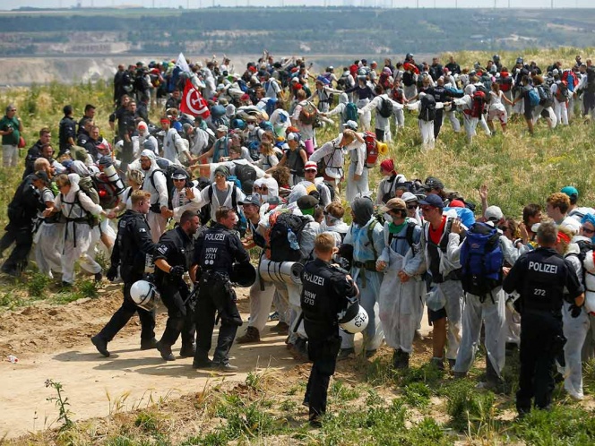 La policía alemana movilizó a cientos de agentes para evitar que las grandes minas descubiertas y las centrales eléctricas próximas queden bloqueadas por los manifestantes.