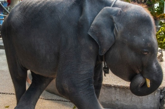 El pequeño animal, junto con otros dos elefantes, era obligado a bailar y actuar para los turistas del zoo y presentaba un alto nivel de desnutrición.