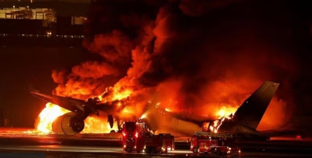 JAPÓN.- Los 379 pasajeros y tripulantes que iban en un vuelo de la aerolínea japonesa Japan Airlines fueron evacuados sanos y salvos este martes luego de que la nave estallara en llamas.