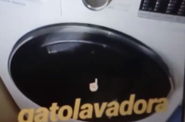 En las imágenes, se observa al animal dentro de la lavadora mientras la mujer se burla y dice “¿Qué es lo que pasa?, ¿Miau?, ¡Ahí te quedas!”.