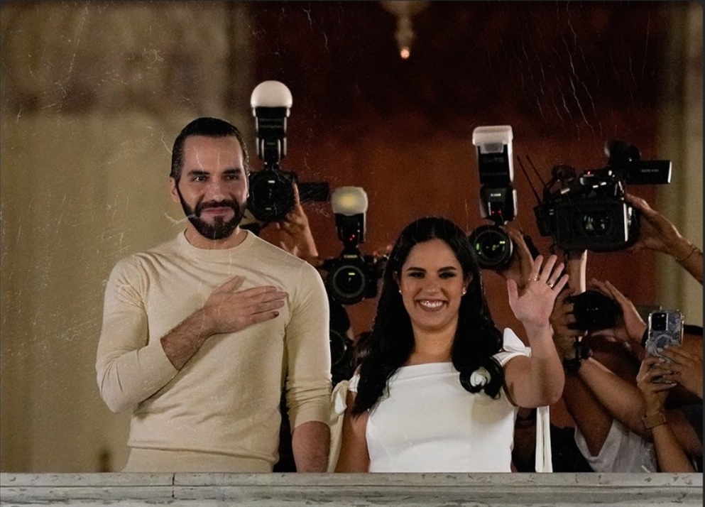 A las 10:16 de la noche, Bukele salió a un balcón del Palacio de Gobierno en el centro de San Salvador, de la mano de su esposa, Gabriela Rodríguez, para agradecer ante miles de salvadoreños.