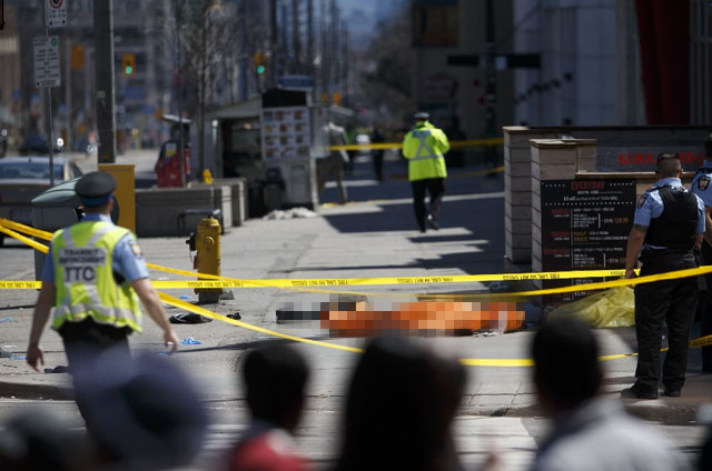 Toronto.- Al menos nueve personas murieron y 16 quedaron heridas el lunes en Toronto, luego de que una camioneta se lanzara a toda velocidad sobre una acera atropellando a varios peatones, informó la policía.