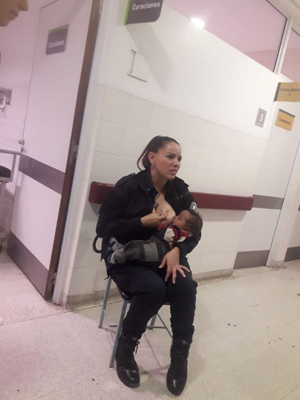 En redes sociales se hizo viral la fotografía de una policía de Buenos Aires amamantando a un bebé hospitalizado.