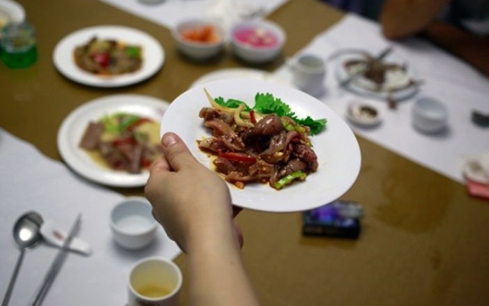 El menú del restaurante cuenta con más de una docena de platillos con carne de perro, incluyendo costillas, patas y piel hervida de perro.