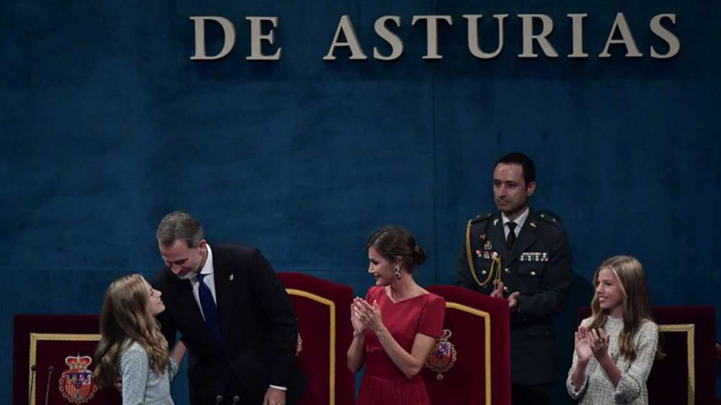 “Estamos aquí para rendiros homenaje,” dijo la joven heredera con voz firme y sonriéndole a los galardonados, a quienes agradeció por “fomentar la cultura y la ciencia” o “preservar la naturaleza y reducir las injusticias”.