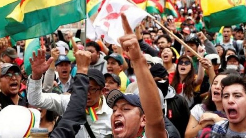 La movilización buscaba llegar a la sede de Gobierno para exigir justicia y la renuncia de la autoproclamada Presidenta, Jeanine Áñez. Al frente de la marcha iban algunas camionetas con los féretros de los ocho fallecidos el martes.