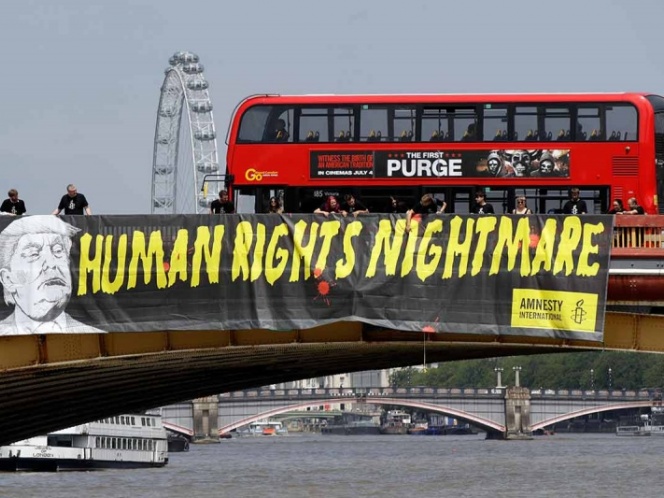Además, una camioneta con el lema “Go Home” (Vete a casa) se desplazará a lo largo de la mañana por la zona del Parlamento de Westminster, mientras que Amnistía Internacional desplegará una pancarta frente a la embajada de EU.