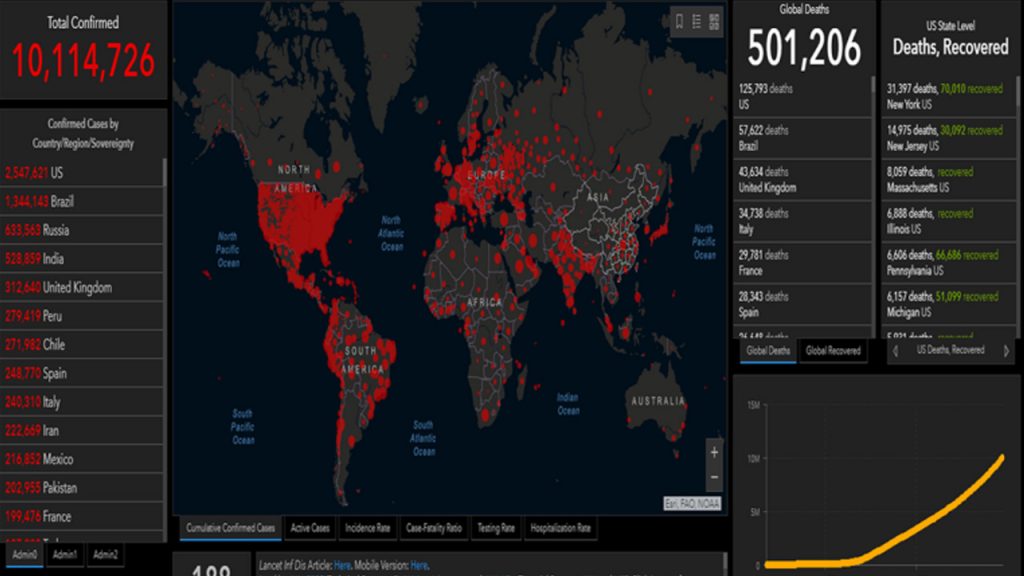 El mundo ha registrado oficialmente más de medio millón de muertos por el nuevo coronavirus y diez millones de casos de infección desde diciembre.