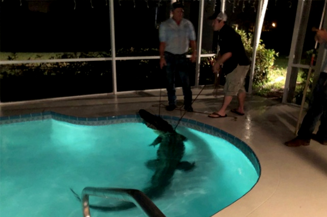 Un suceso similar ocurrió de nueva cuenta pero ahora en la localidad de Nokomisen Sarasota, Florida cuando una familia tuvo que llamar a la policía al descubrir con horror que su alberca había sido apropiada por un caimán.