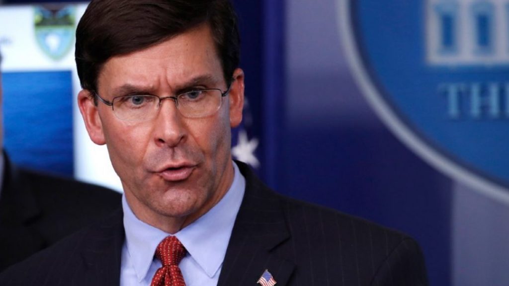 En conferencia de prensa Mark Esper afirmó “no apoyo que se use la ley de insurrección, y aclaró que el uso de las fuerzas armadas siempre debe ser un último recurso y “sólo en las acciones más urgentes y graves.