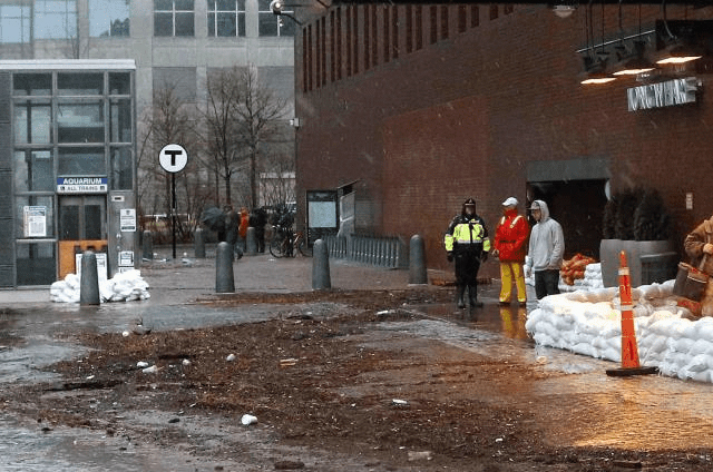 Las inundaciones en Quincy,Massachusetts, sumergieron vehículos, y la policía rescató a quienes quedaron atrapados en su interior. Las altas olas azotaron la cercana Scituate, impidiendo el tránsito en sus caminos y convirtiendo los estacionamientos en pequeños estanques.