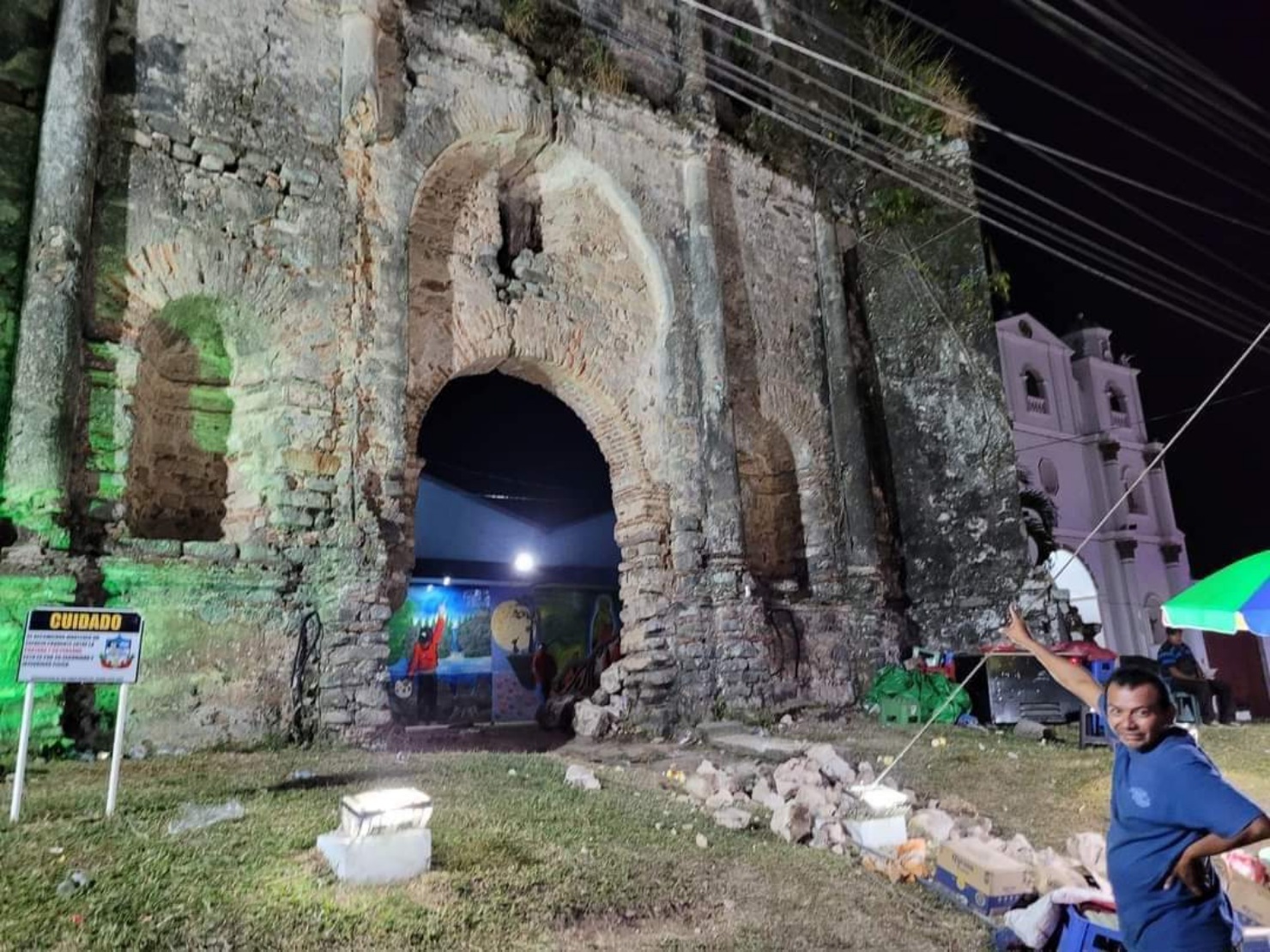 La CONRED reportó la caída de rocas de la fachada de la iglesia de San Pablo Jocopilas, en Suchitepéquez, como consecuencia del sismo. También informó sobre el colapso de un muro y el colapso de una tubería de agua potable.