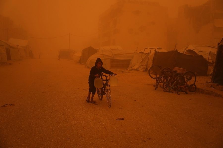 Carpas de plástico tambaleándose, basura volando a causa del viento y edificios difícilmente diferenciables para quienes caminaban por las calles de Ciudad de Gaza, teñidas de naranja por el polvo, fueron la tónica habitual esta mañana, según constataron medios internacionales.