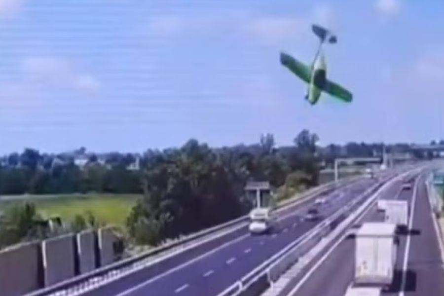 En las imágenes se observa cómo la aeronave cae en picada y se estrella contra la carretera, provocando una explosión que generó una gran bola de fuego. Algunos vehículos que circulaban por la zona lograron esquivar el accidente realizando maniobras de emergencia.