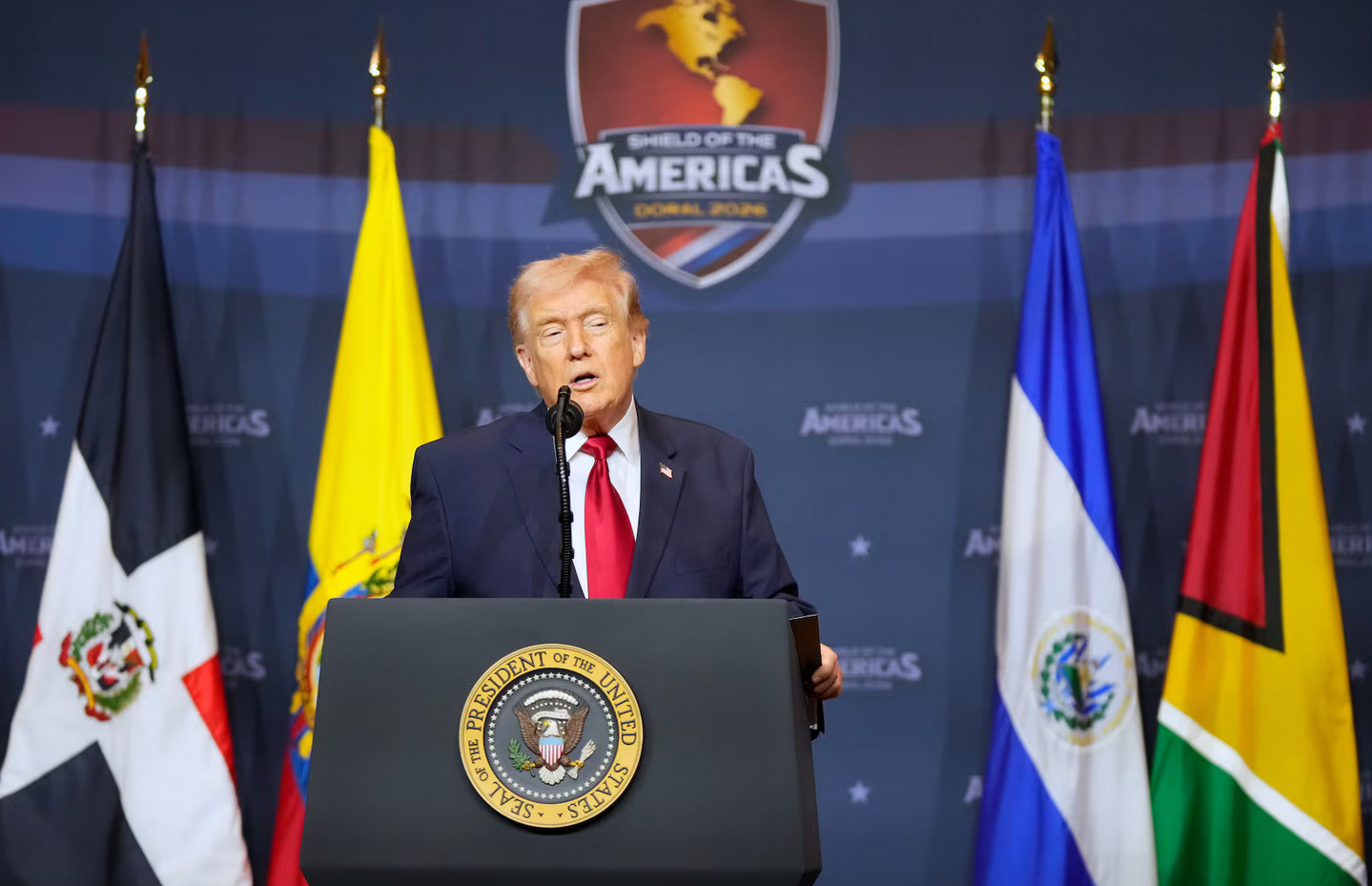 Trump también anunció una nueva coalición militar regional para combatir a los narcotraficantes. La iniciativa contempla la cooperación de casi 20 países de América Latina y el Caribe contra lo que calificó como “narcoterroristas”.