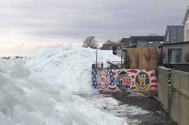 Poderosos vientos combinados con una tormenta invernal provocaron una marejada de gruesos bloques de nieve en algunas zonas del estado de Nueva York cercanas al río Niágara y al lago Erie, informa la prensa local.